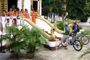 为什么不租一辆自行车,沿着巴色及其周边的一些建议路线骑行呢?或者简单地搭一辆突突车爬上山,前往“瓦普薄沙劳”寺庙的大金佛,欣赏湄公河和小镇的壮丽景色。傍晚时分,不仅从山上,而且从湄公河上的一家船上餐厅或一个天台上,都能欣赏到特别美丽的光景,您可以在那里享受晚餐或仅仅喝杯酒,欣赏夕阳西下。