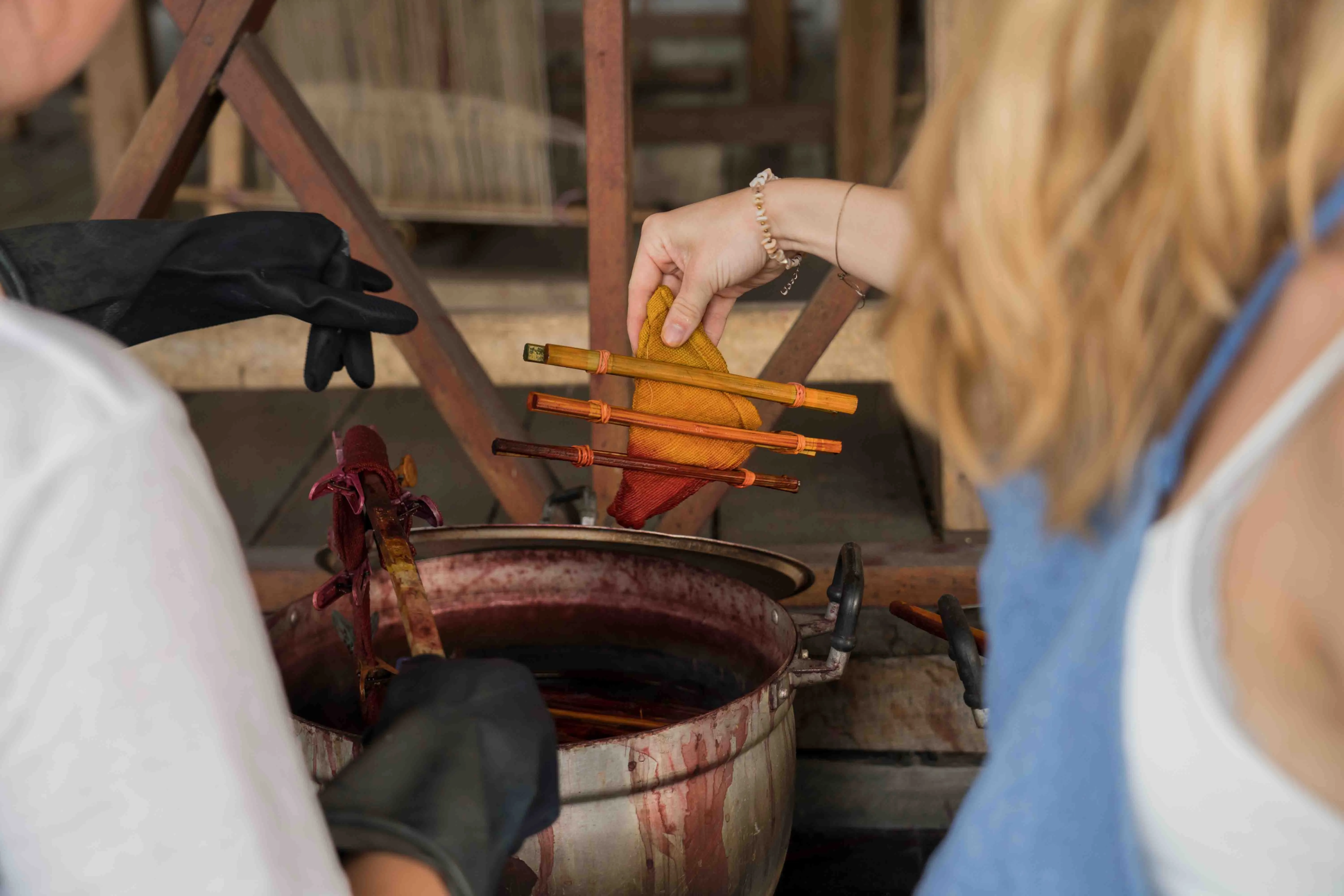 - 使用我们的主要染料师傅准备的天然染料,在手工织丝巾上创造出各种图案和颜色。所有染料都是由我们花园里的植物制成的!