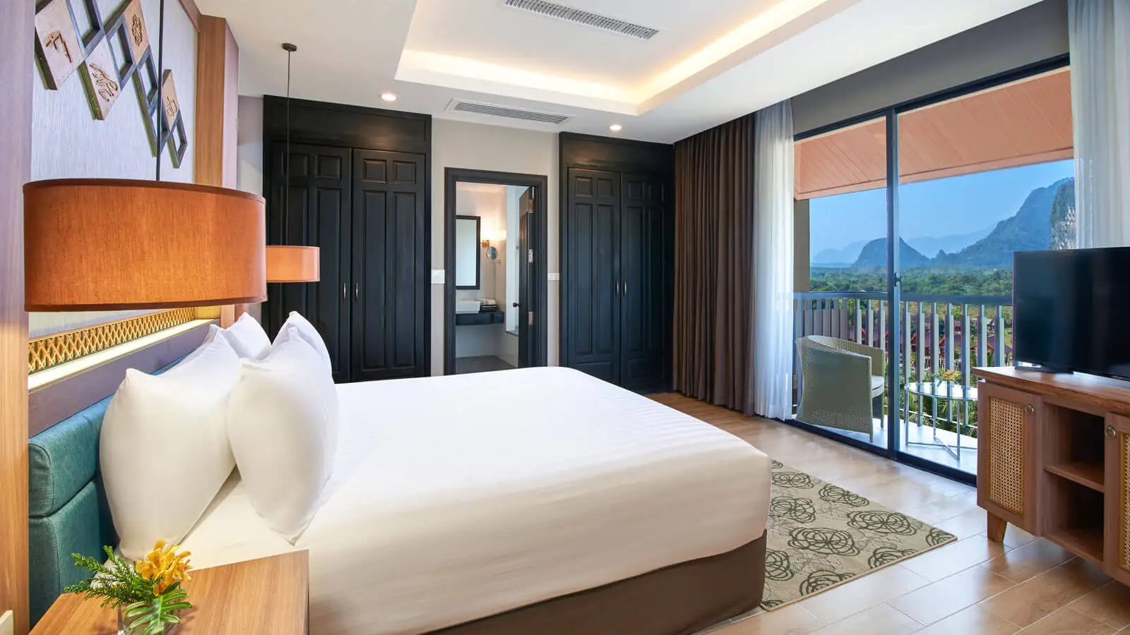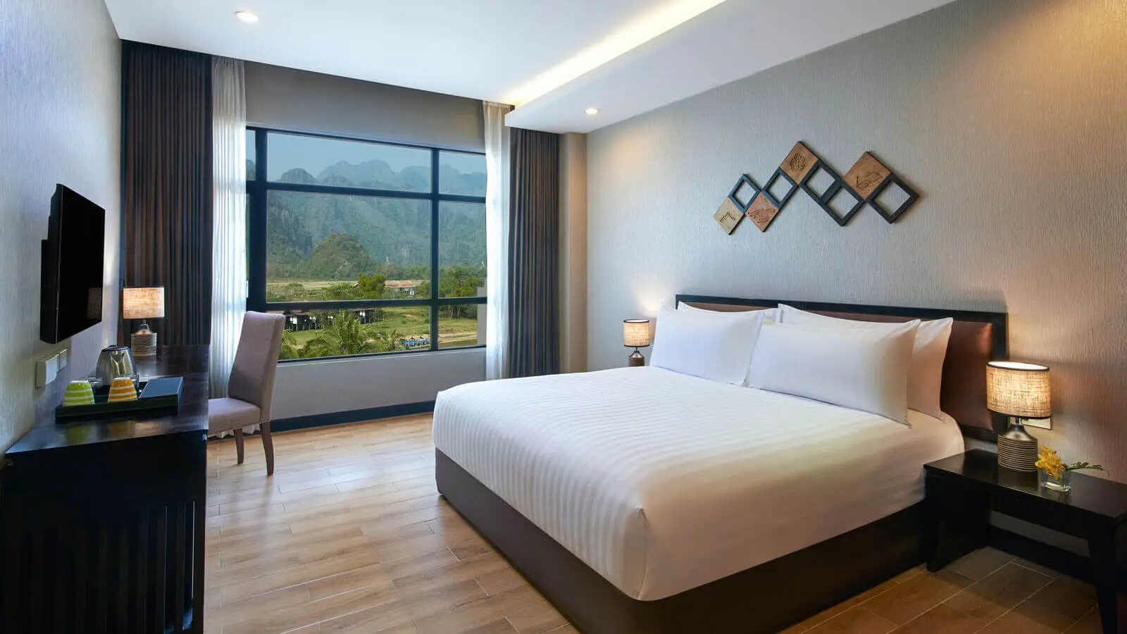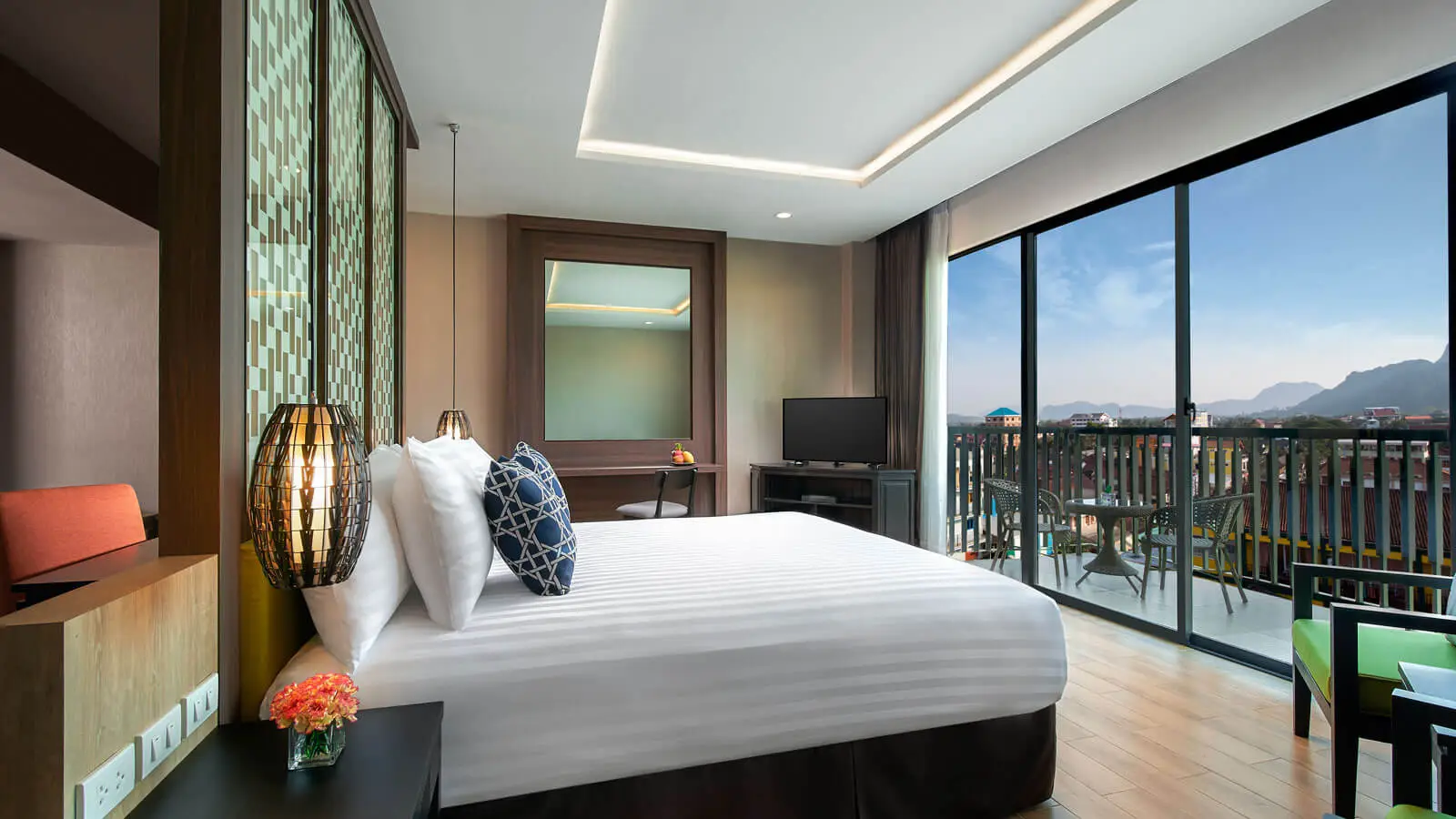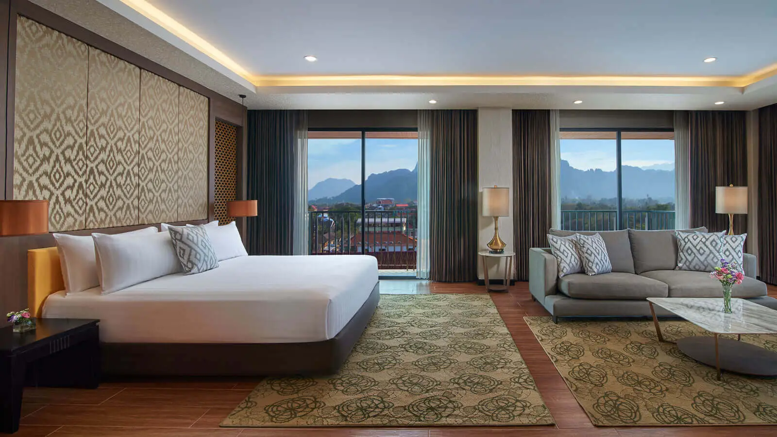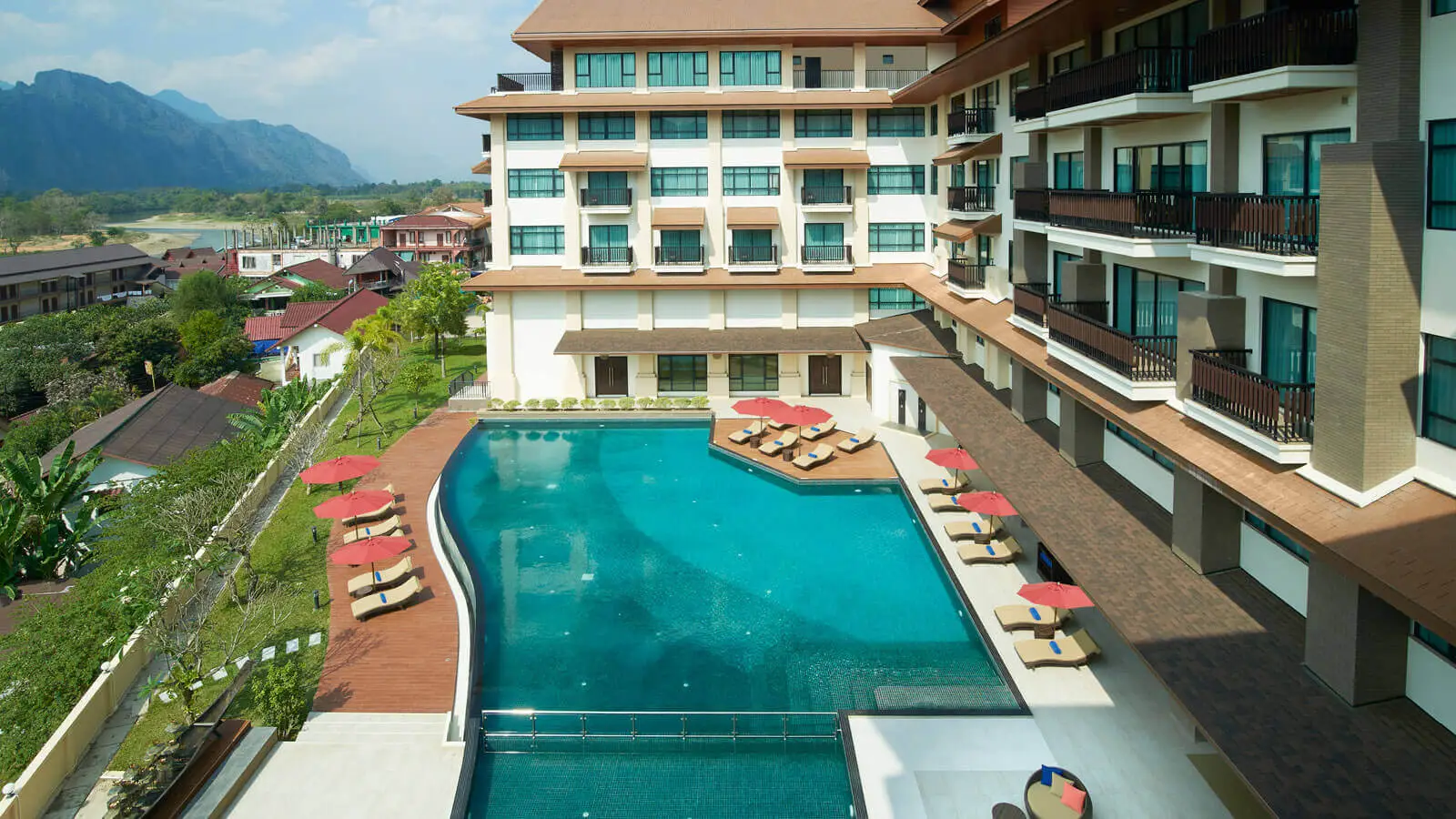 Built with comfort and a modern interior design, our hotel in Vang Vieng offers 160 rooms and suites for a place to rest after hours of exploring the town north of Vientiane. Features plush pillows, black-out curtains and modern technology for a serene enclave to feel your best the next day.