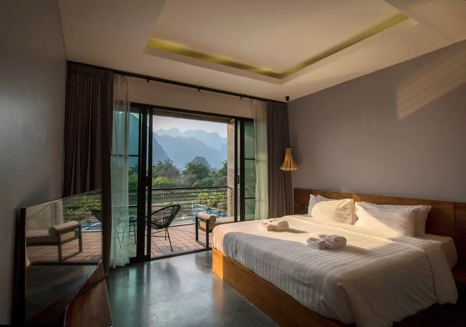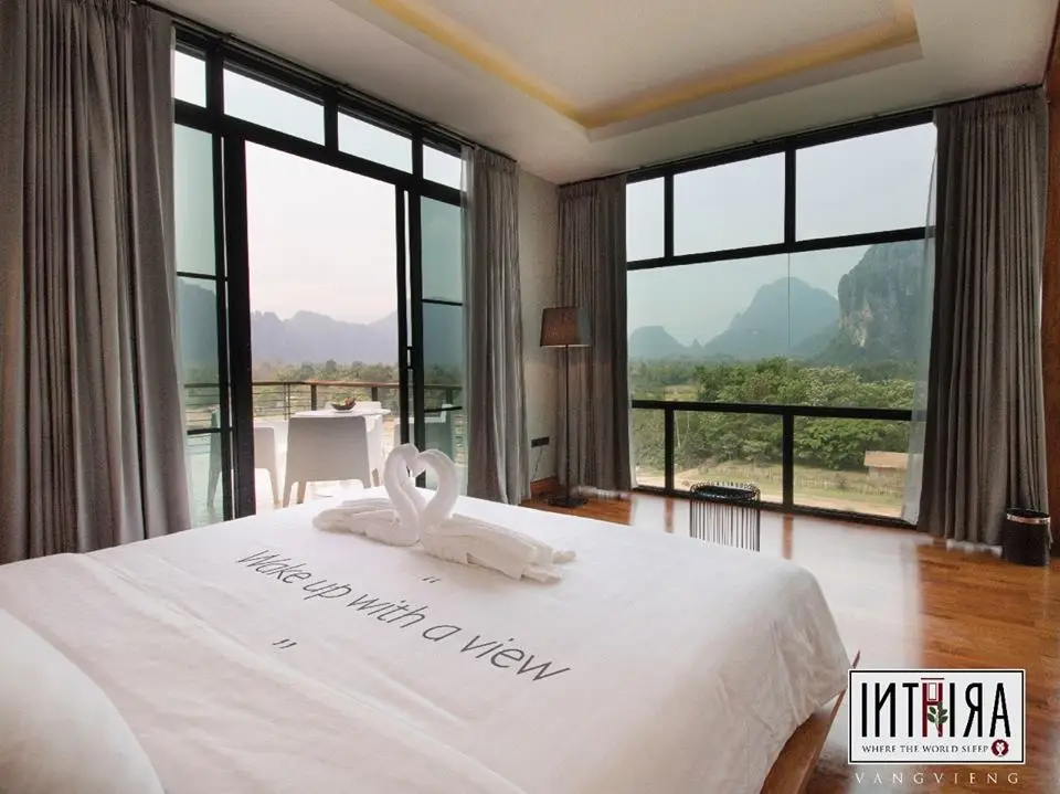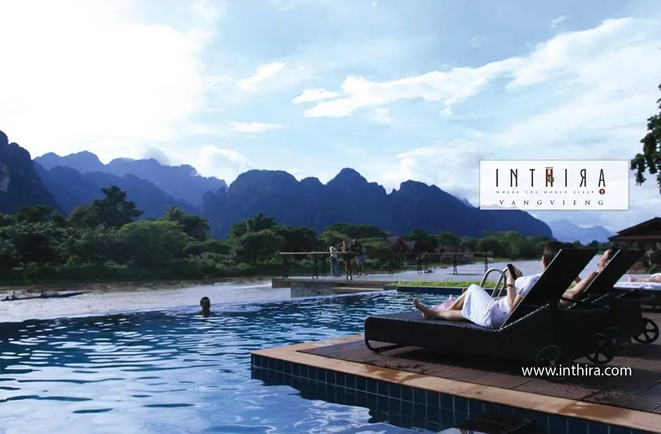 Inthira Vangvieng features a restaurant, outdoor swimming pool, a garden and bar in Vang Vieng. Featuring room service, this property also provides guests with a terrace. The air-conditioned rooms provide a river view and come with a wardrobe and free WiFi.