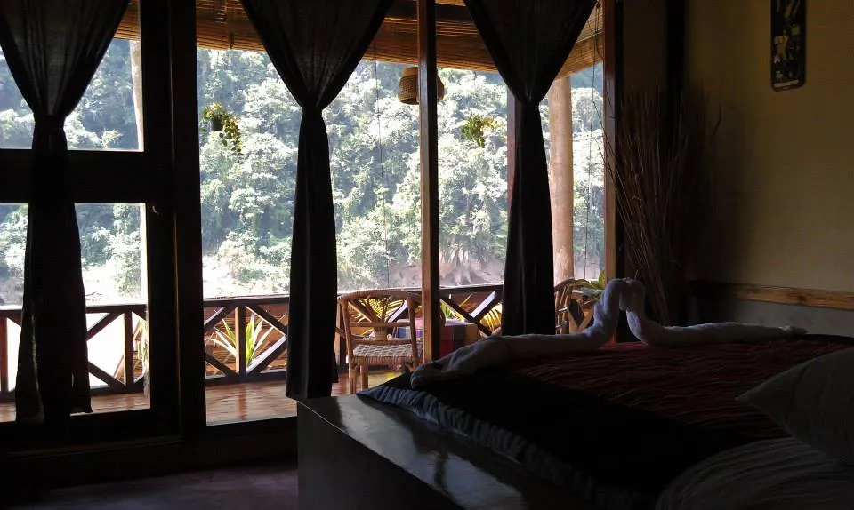 Situated high on the banks of the Nam Ou river, opposite the incredible Pha Xang cliffs plunging into the river, Mandala Ou Resort offers you the choice of 10 deluxe detached bungalows incorporating your modern comfort needs with a quality, traditional Lao design. Each bungalow offers king sized bedding, a large modern bathroom ,a private balcony, all modern amenities and free WiFi connectivity throughout. Our guests are welcome to enjoy the infinity edge pool and teak decking overlooking the river, jungle and mountains, a Lao herbal steam sauna, relaxed raised seating around our reflective fountain pool, and a unique Yoga and Massage platform overlooking the river with sunset view. We are pleased to provide you with our internationally qualified Yoga instructor for individual lessons or group sessions. For all your culinary desires, our modern kitchen serves authentic pan-Lao specialities in addition to classic Thai and Western cuisine - enjoy your meals in your own time with splendid views of the surrounding mountains and the local river life...and soak up the ambiance with a sundowner at our poolside cocktail bar.