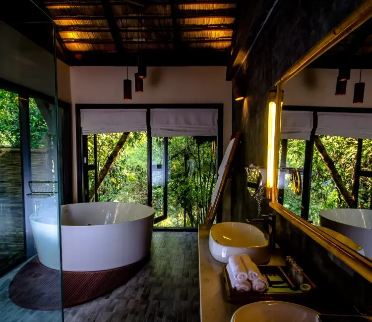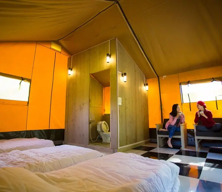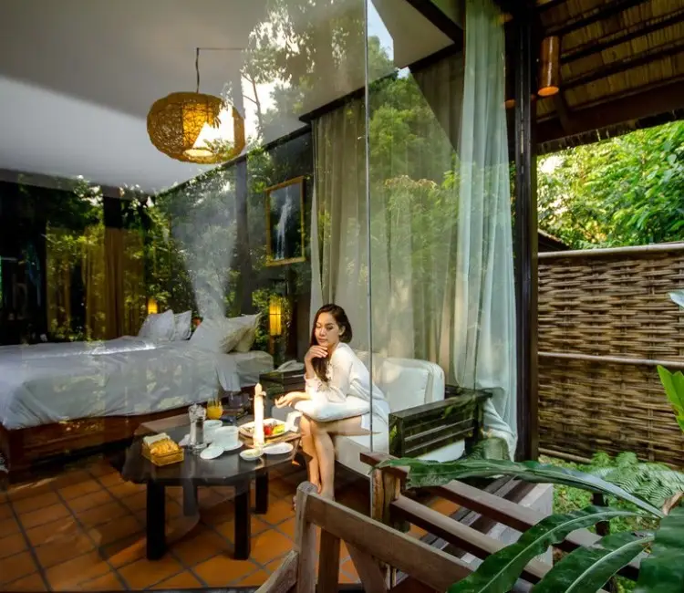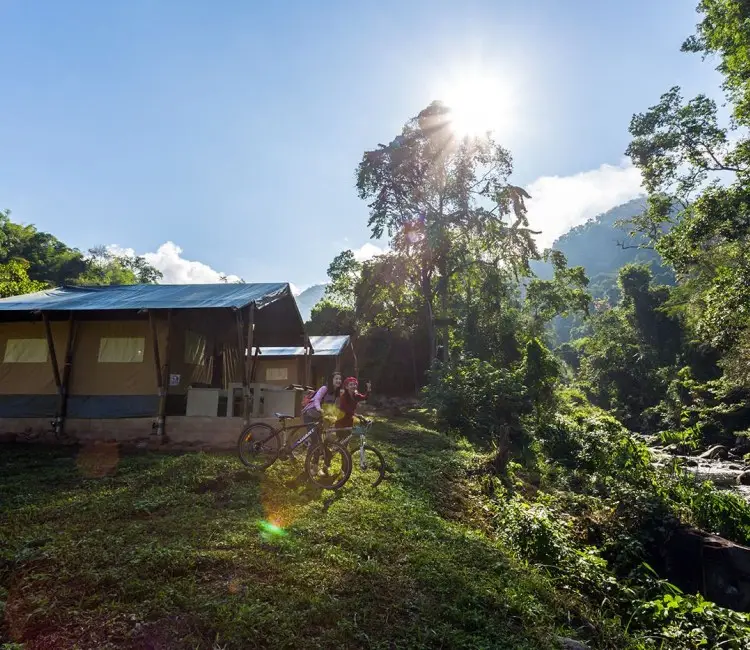 Tent Safari (approximate size: 25 square meters): With a panoramic view of the mountains, forest, and river. Safari tent offer bathroom with the hot water system, dining table both inside and the balcony. Enjoy the Natural view with the sound of bird and enjoy the river view from the tent, Capacity for 6 persons. START FROM $95 / NIGHT