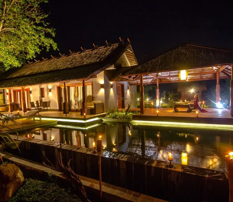Deluxe (approximate size: 76 square meters): 2 King beds With a panoramic view of the surrounding mountains and tropical garden, the Deluxe rooms are perfect for honeymoons and couple. These Deluxe offer elegant bedrooms with a tastefully decorated bathroom and a charming living room. Our Deluxe room has TV, private safety boxes and a combination of shower and bath facilities. START FROM $140 / NIGHT