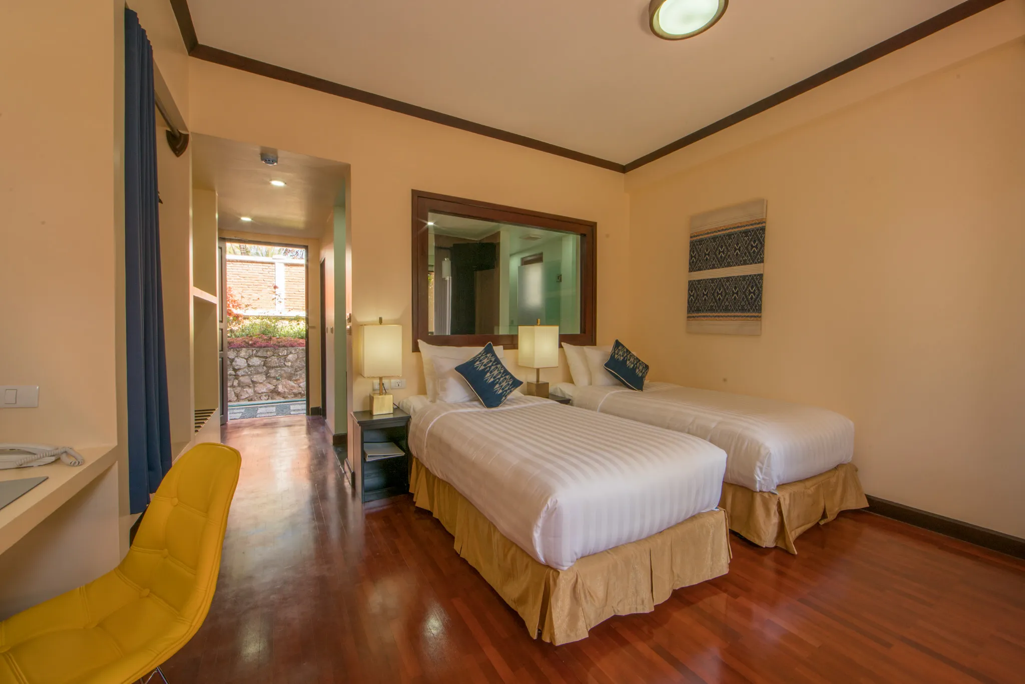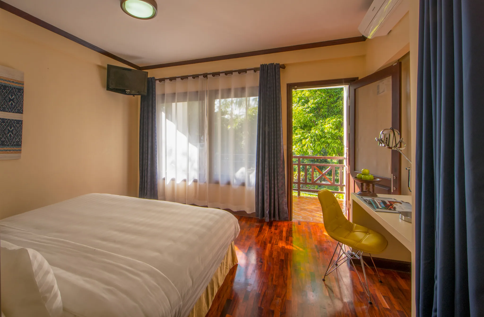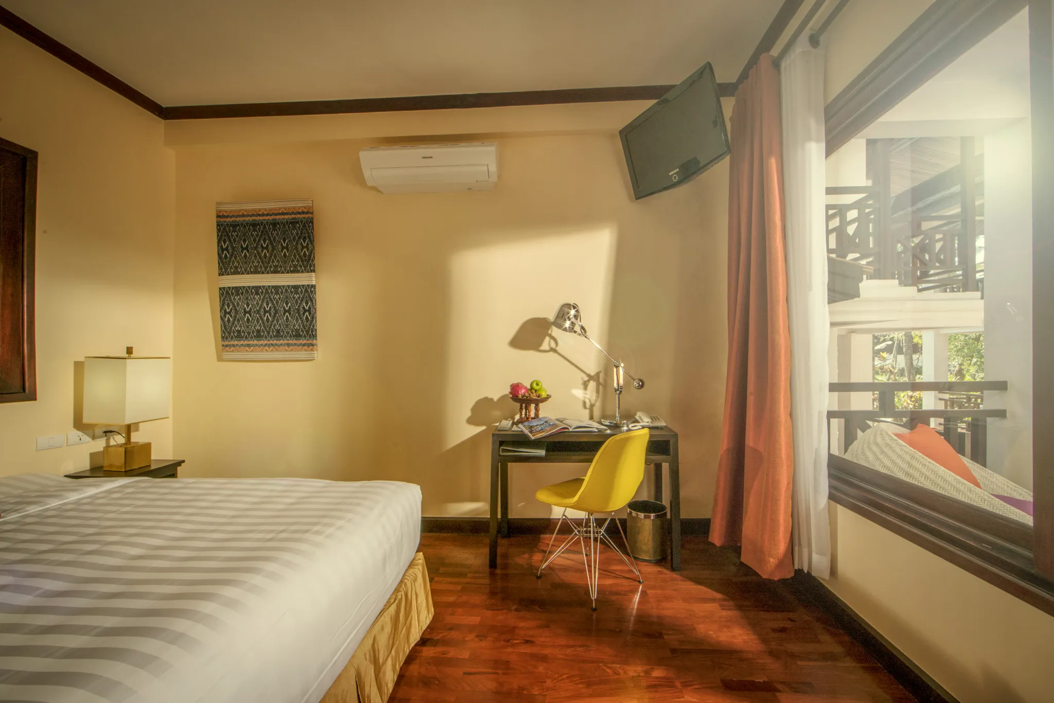 Our 20 Classic rooms are stylish and comfortable, a blend of traditional Laotian design and contemporary decor with all of the amenities you would expect from an international standard hotel.  All rooms have individually controlled air-conditioning, seperate shower, IDD telephone, mini-bar, tea & coffee making facilities, personal safe and daily complementary bottled water. Rooms feature a choice of king or twin beds, each with a private balcony overlooking our lush tropical garden setting.