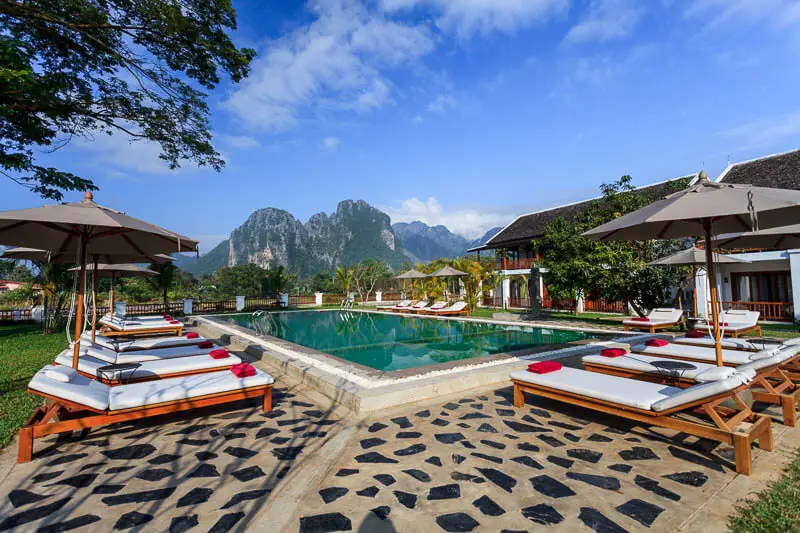 Ideally located on the bank of the Nam Song River, multi-award winning Riverside Boutique Resort is a luxury hotel with charm and character. It is laid out around one of the most inviting swimming pools to be found in Laos, and offers stunning views of the surrounding forest-clad limestone mountains.