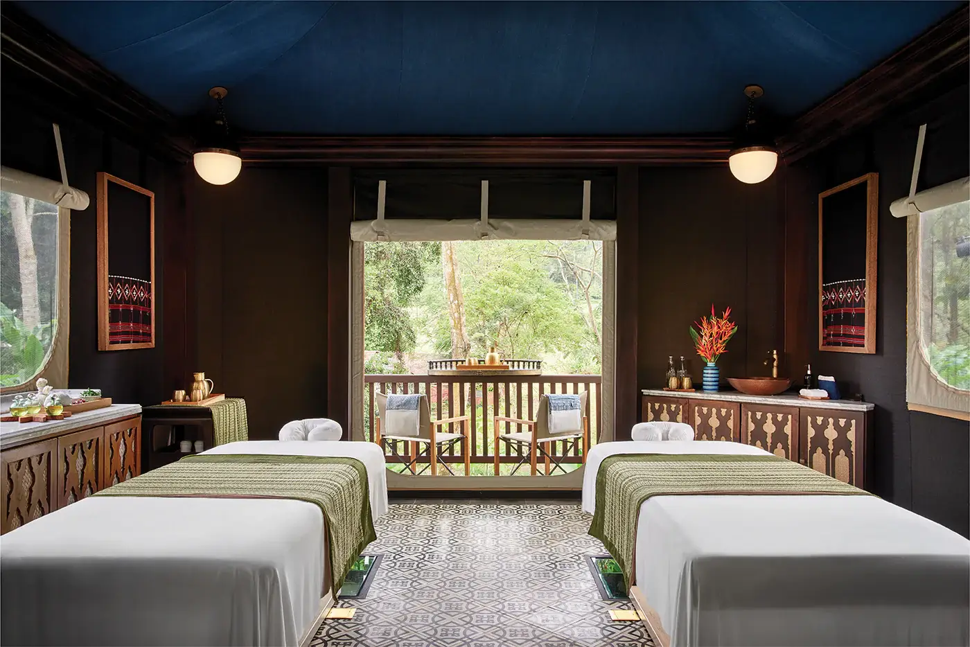 HILLTOP TENTS: The design of the Hilltop Tents features colors, textiles and patterns utilized by the area's indigenous hill tribes that still inhabit the wild mountains around us, bringing guests closer to understanding our unique location. The interior of the tent features a king-size bed and oversized daybed, encouraging you to enjoy the nature around you. As well as a refreshing rain shower, the classic-style bathtubs invite you to luxuriate longer-as does the oversized balcony with its comfortable sofa.