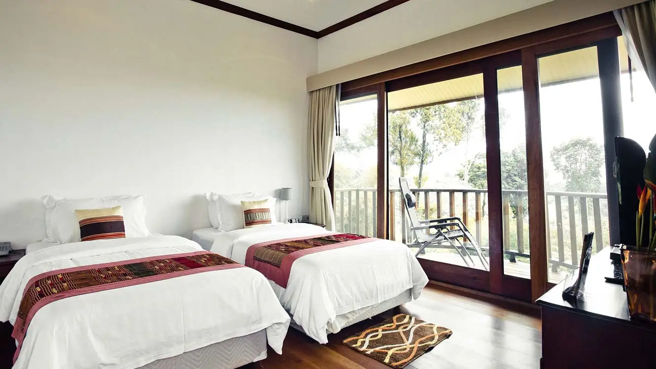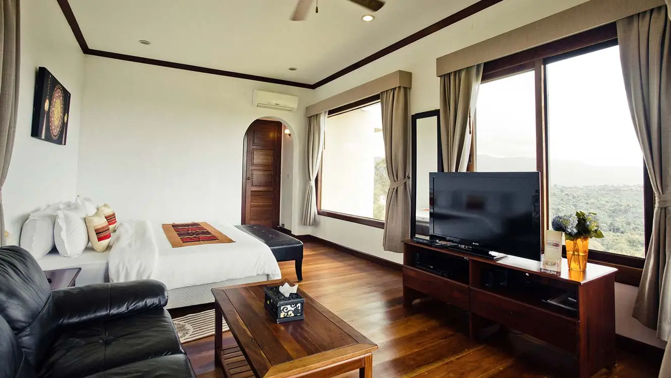 26 Villas and 32 Rooms on top of the hill spacious tropical-styled room overlooking the terrace and the mountains in the beautiful Bolaven Plateau, Paksong Champasak, Laos. Every villas and rooms fully equiped with amenities for an exhilarating and exciting break away.