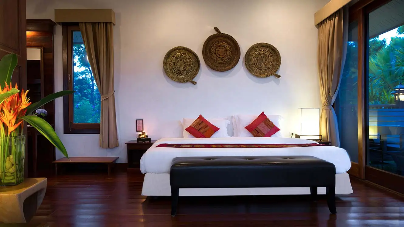 DELUXE FAMILY VILLA – TRIPLE BED: The spacious Deluxe Family villa is suitable for 3 persons and offer anything a guest could wish for. The interior and the gardens reflect the peace and space the surroundings offer. The big windows in the room offer a wonderful view of the nature green hills.