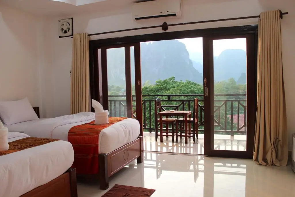Offering comfortable rooms with picturesque views of the surrounding mountains, The Grand Riverside Hotel is located just 100 m from Nam Song River Bridge and 600 m from Jang Cave. This property features an outdoor pool, a restaurant and free WiFi, which is accessible in all areas.
