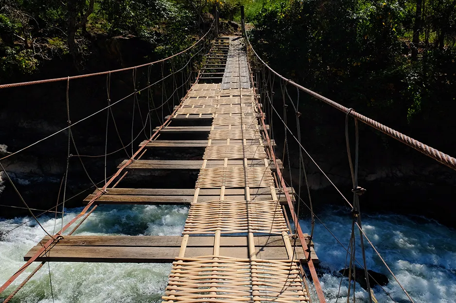 ມື້ຕໍ່ມາ, ຂ້າພະເຈົ້າໄດ້ເຊົ່າລົດຈັກ ແລະ ຂີ່ເລາະຕາມເສັ້ນທາງຊີມັງຈົນຮອດທາງດິນແດງ, ແລ້ວຄ່ອຍໆຂີ່ຢ່າງລະມັດລະວັງເພື່ອຂ້າມບັນດາຂົວໄມ້ໂດກ. ສ່ວນໃຫຍ່ແມ່ນຈະຂີ່ລຽບໄປຕາມເສັ້ນທາງນ້ອຍໆທີ່ມີຕົ້ນຕານລຽນນໍາທາງພ້ອມກັບໝູ່ບ້ານນ້ອຍທີ່ມີເປັດໄກ່ແລ່ນໄປແລ່ນມາ ແລະ ແມ່ຍິງທີ່ນັ່ງຢູ່ຕາມຮ້ານນ້ອຍໆຂ້າງທາງເພື່ອລໍຖ້າຂາຍນໍ້າມັນແອັດຊັງສີບົວທີ່ຮ່າຍໃສ່ຕຸກນໍ້າດື່ມໄວ້ໃຫ້ລົດທີ່ຜ່ານທາງ ເຖິງແມ່ນວ່າການຈະລາຈອນລົດຈັກແມ່ນເກືອບຈະບໍ່ມີເລີຍກໍ່ຕາມ. ຢູ່ເຂດເຄິ່ງກາງຂອງດອນແມ່ນຈະມີບັນດາທົ່ງນາທີ່ກ້ວາງໃຫຍ່ໄພສານອ້ອມຮອບເສັ້ນທາງທີ່ລຽບໄປຕາມທາງລົດໄຟເກົ່າໄປສູ່ຂົວຝຣັ່ງທີ່ເຊື່ອມຕໍ່ດອນເດດກັບດອນຄອນເຂົ້າກັນ. ທາງລົດໄຟດັ່ງກ່າວຖືກສ້າງຂຶ້ນໃນປີ 1894 ເພື່ອຂົນເຄື່ອງຈາກເຮືອທີ່ລ່ອງແມ່ນໍ້າຂອງຈາກເມືອງໄຊງ່ອນ, ເຖິງຈະເຄີຍມີການລອງແລ່ນເຮືອທວນນໍ້າຕົກຕາດເບິ່ງແລ້ວ ແຕ່ຍ້ອນພົບກັບກະແສນໍ້າຂອງຄອນພະເພັງ ຈຶ່ງເຮັດໃຫ້ບໍ່ສາມາດນໍາເຮືອມາແລ່ນຜ່ານໄດ້. ຢູ່ອີກຟາກໜຶ່ງຂອງຂົວຝຣັ່ງແມ່ນ ຫົວລົດໄຟ ເອໂລອີສ (Eloise) ເຊິ່ງເປັນລົດໄຟແບບດັ້ງເດີມທີ່ຖືກຮັກສາໄວ້ໃຫ້ລຸ້ນລູກລຸ້ນຫຼານໄດ້ເບິ່ງໄດ້ຊົມ.