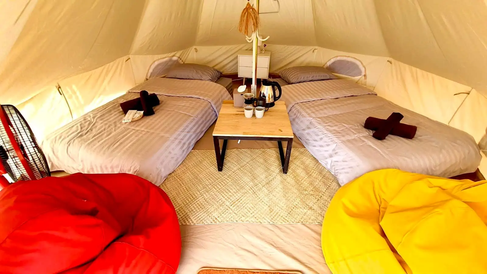 Every tent can accommodate 2-4 people or add more tents (1 free small tent)