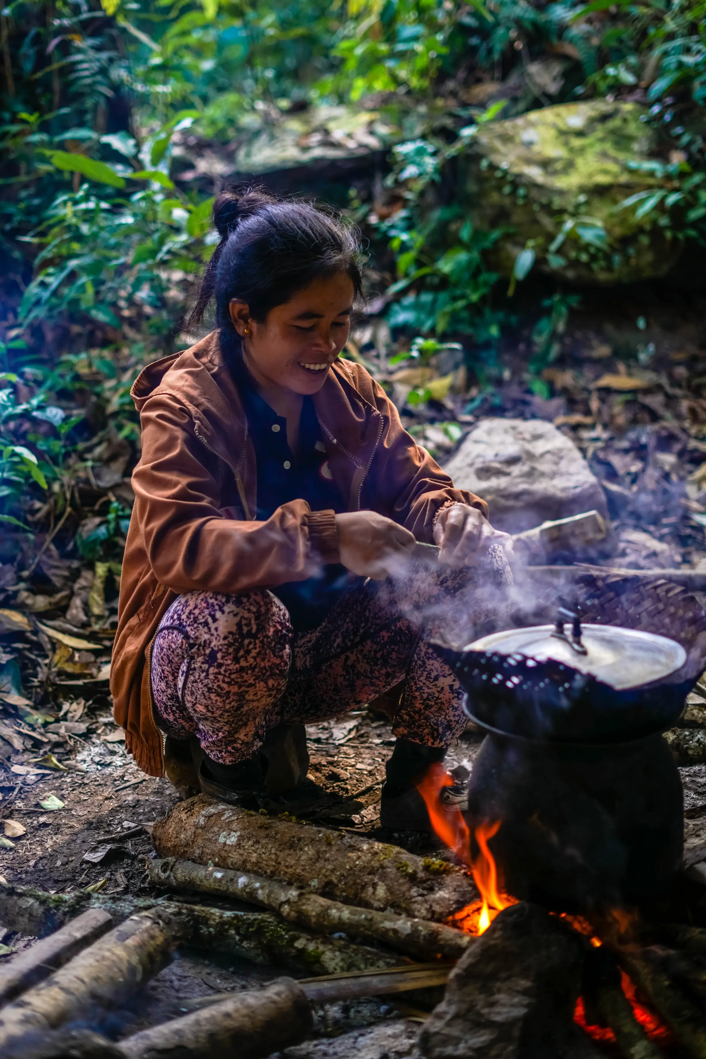 ตอนเย็น : พักผ่อนรอบกองไฟภายในอุทยานแห่งชาติและเพลิดเพลินกับอาหารค่ำของชาวขมุแบบดั้งเดิมที่จัดเตรียมโดยกลุ่มทำอาหารในหมู่บ้านในเวลาประมาณ 18.00 น. - 19.00 น. รับประทานอาหารเย็นที่แคมป์และไม่อนุญาตให้รับประทานที่หอสังเกตการณ์ หลังอาหารค่ำ คุณจะได้รับฟังการบรรยายสรุปเกี่ยวกับการชมสัตว์ป่าที่โป่งเนียดซึ่งเป็นโป่งที่ใหญ่ที่สุดแห่งหนึ่งในอุทยานแห่งชาติ มัคคุเทศก์จะแจ้งให้นักท่องเที่ยวทราบเกี่ยวกับสัตว์ชนิดต่างๆ ที่พวกเขาอาจพบเห็น และอธิบายกฎและข้อควรปฏิบัติในการใช้ไฟ