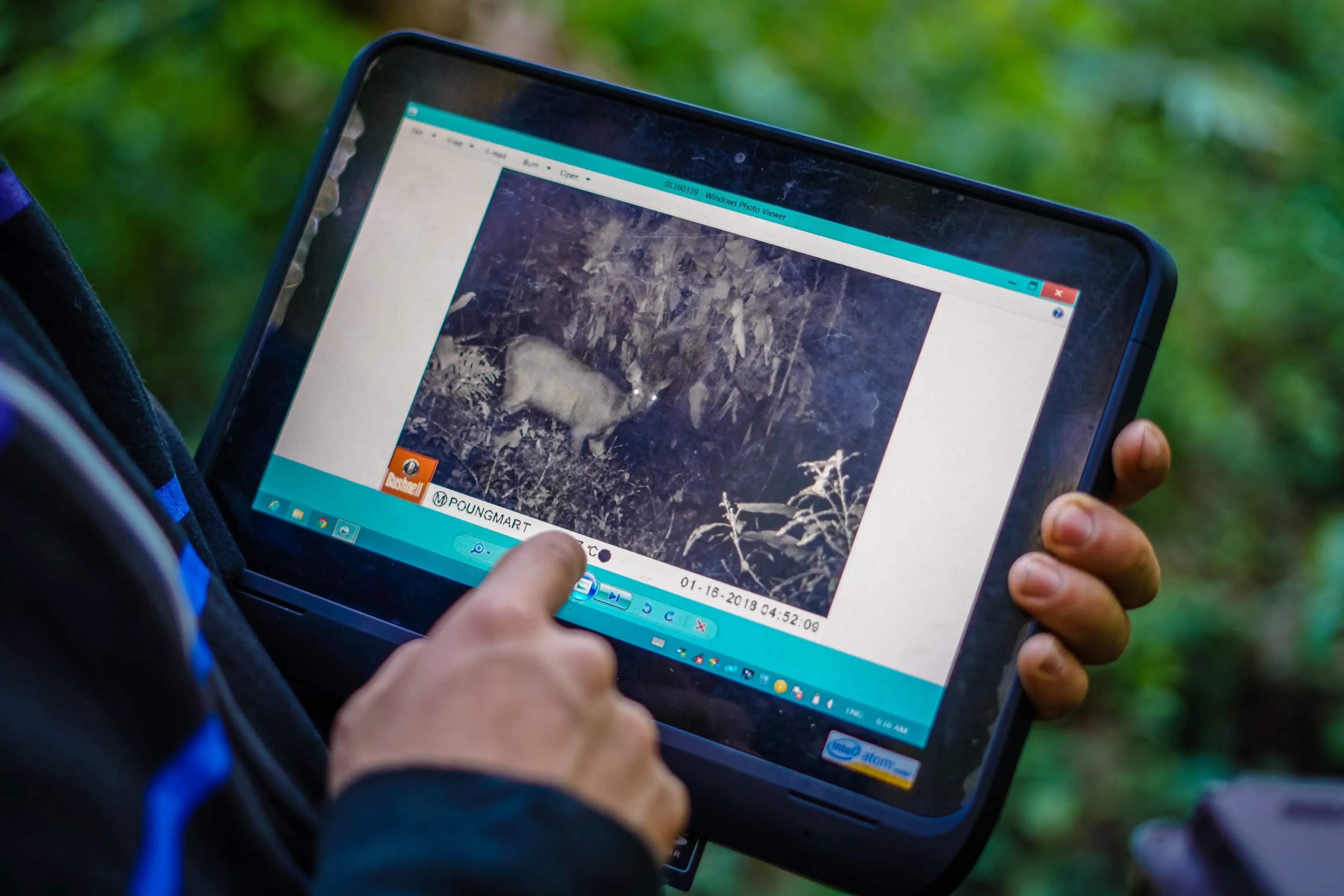 เมื่อกลับมาที่แคมป์ รับประทานอาหารเช้าและดูภาพถ่ายกับดักสัตว์ป่าที่ถ่ายโดยกล้องดักในคืนก่อนหน้า