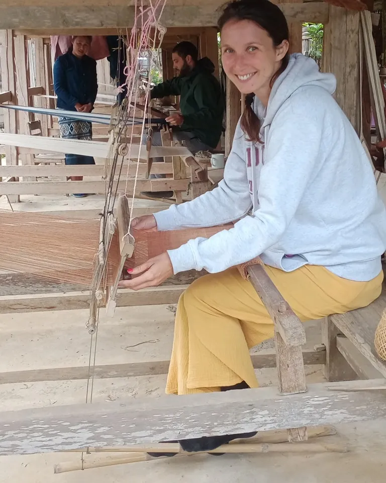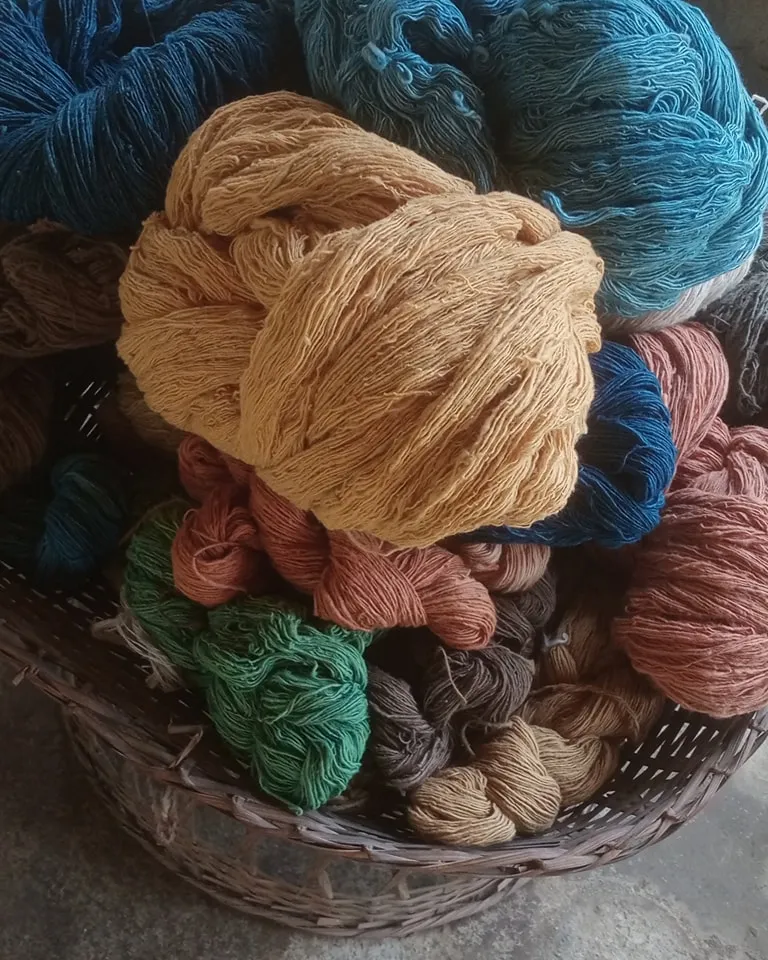 During this first day you will receive a full hands on experience on the fibers. From the cotton plant to making thread to a finished product using indigenous tools. Then you will have the opportunity to choose from a selection of our naturally dyed cottons to weave 3 napkins or a long scarf 190 cm. You also have the option to make instead a short scarf with a pattern.
