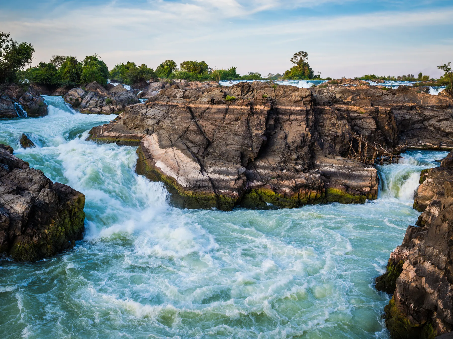 Experience the unique attributes of the "LI PHI" waterfalls by crossing the five INTERCONNECTED SUSPENSION BRIDGES, which range in length from 20 meters to 92 meters. Enjoy an impossible view of Li Phi Waterfalls in Southern Laos. Fly over Mekong River in a zip line over the waterfalls! Expect a thrilling experience! The activity takes place very high over the ground, so it may be a challenge for those with fear of hights, but its not phisically demanding.