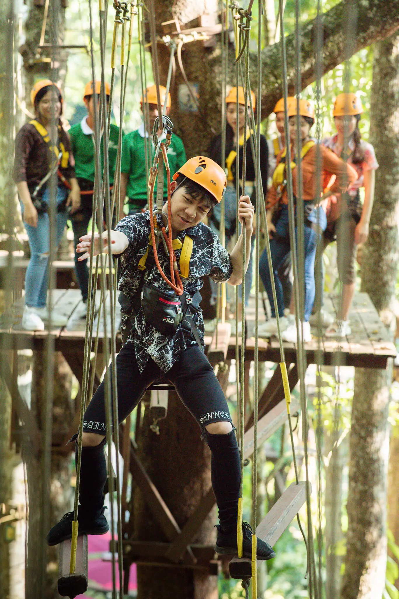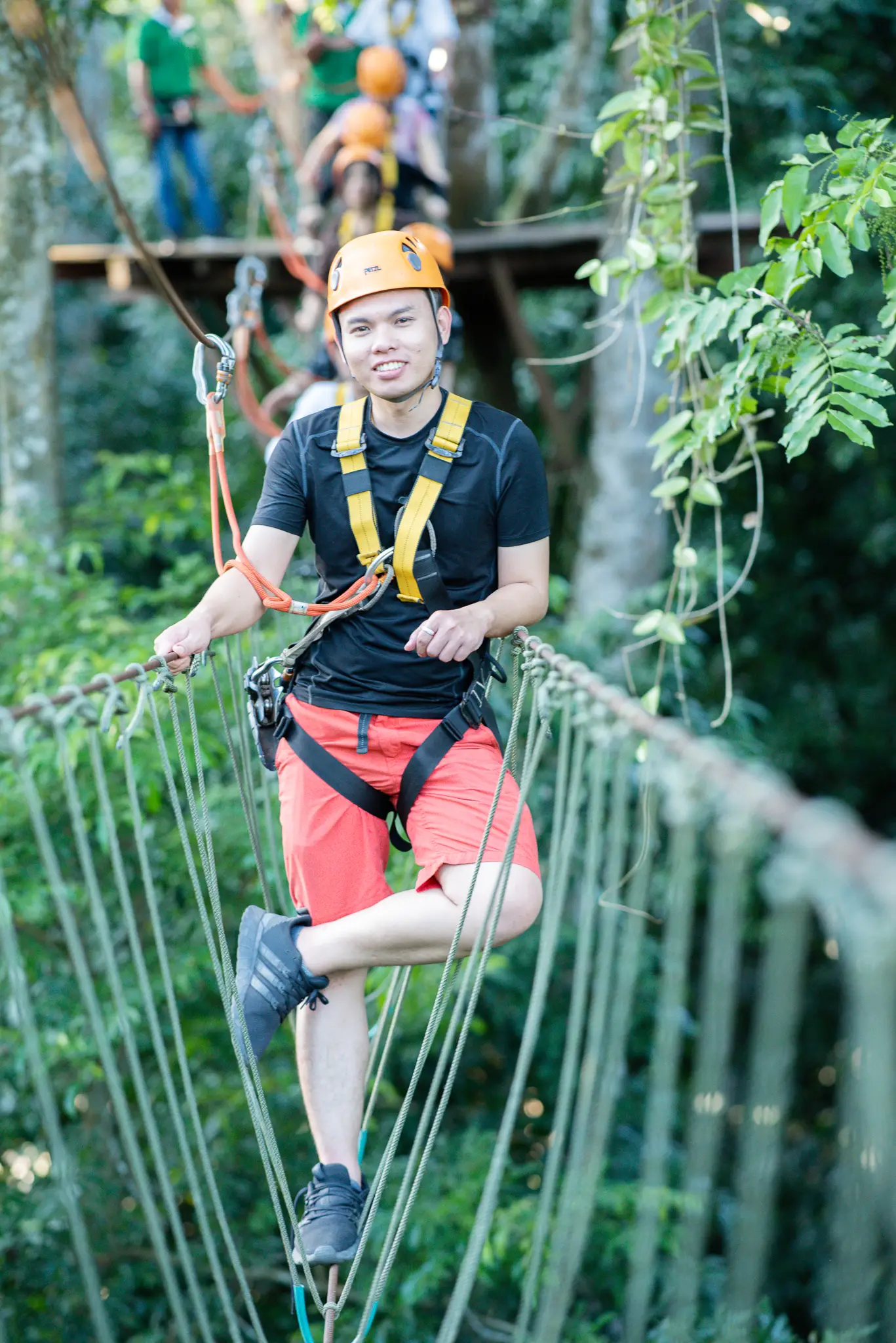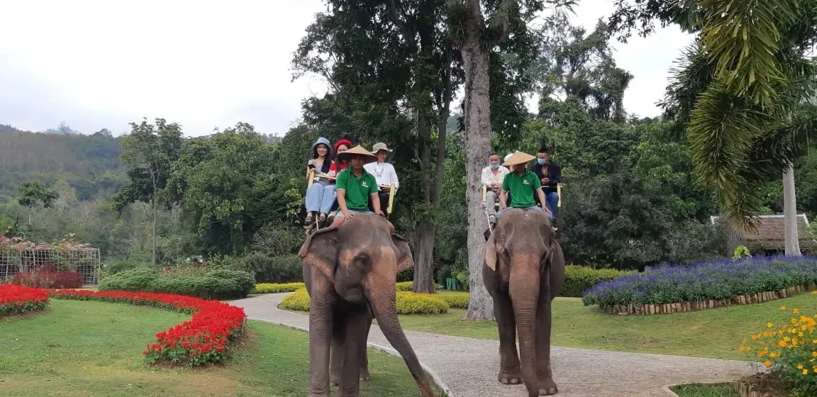 Start to climb up to the higher trees for a loop of 14 stations to challenge your friends or yourself with 14 different bridges and obstacles, Then walk to Elephant camp – Riding Elephant around the Flower garden for 30 minutes.