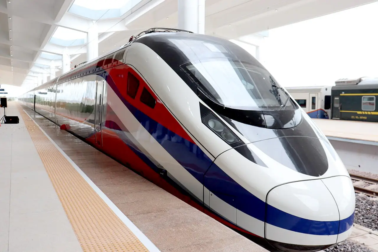 The high-speed rail service is operated by CR200J trainsets traveling at a maximum speed of 160 kilometers per hour.
