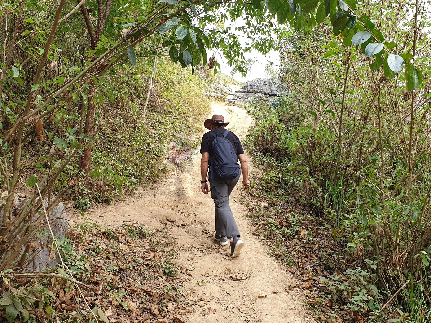 The hunter trails will start with trek from Ban Prang village, 35km away from the town to the south. The first part of the hike we walk up steep hills, along rice fields and witness villagers working in the field. We will head deeper into the forest and walk mainly along the ridge-line, enjoying stunning viewpoints. We will eat a locally prepared lunch under the huge trees. Soon we will climb up the next mountain and through the dense jungle. Your guide will explain about the use of the wild plants and herbs and point out any wildlife that might be around. Next, we walk down to the stream to find the best location to set up our camp nearby the peaceful stream. You may relax or help your guide cook dinner, learning about the use of bamboo and local food. After dinner enjoy the stars and the tranquil sounds before going to sleep.