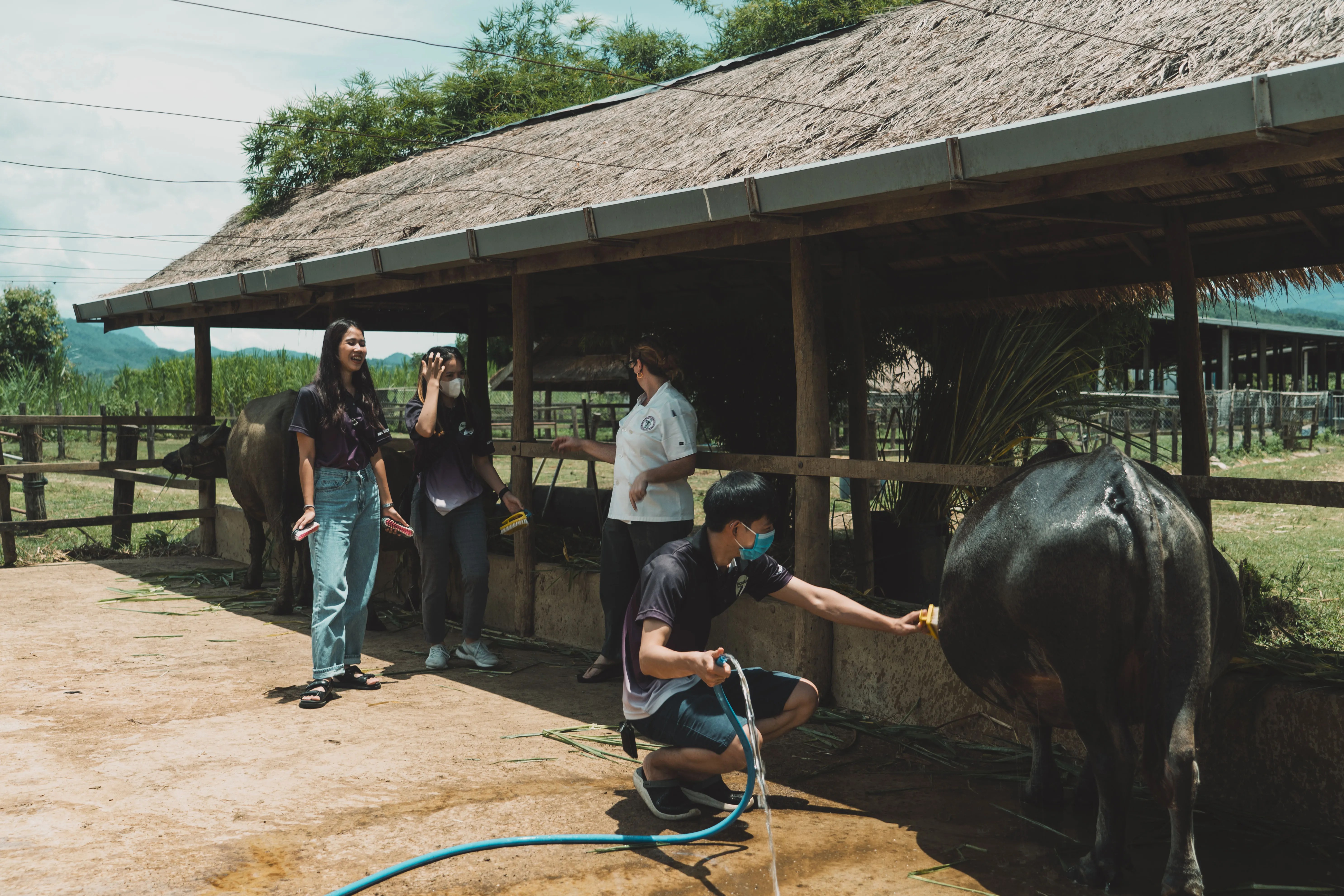 After Lunch head out to Kuangsi waterfall scenic seventy minute drive out of the city, up mountains, and through mountainous jungle and farmland. On the way visit Buffalo Dairy explore the around the farm, learn about how to feed and milk a buffalo, why buffalo milk is so good for you. Then wash them.