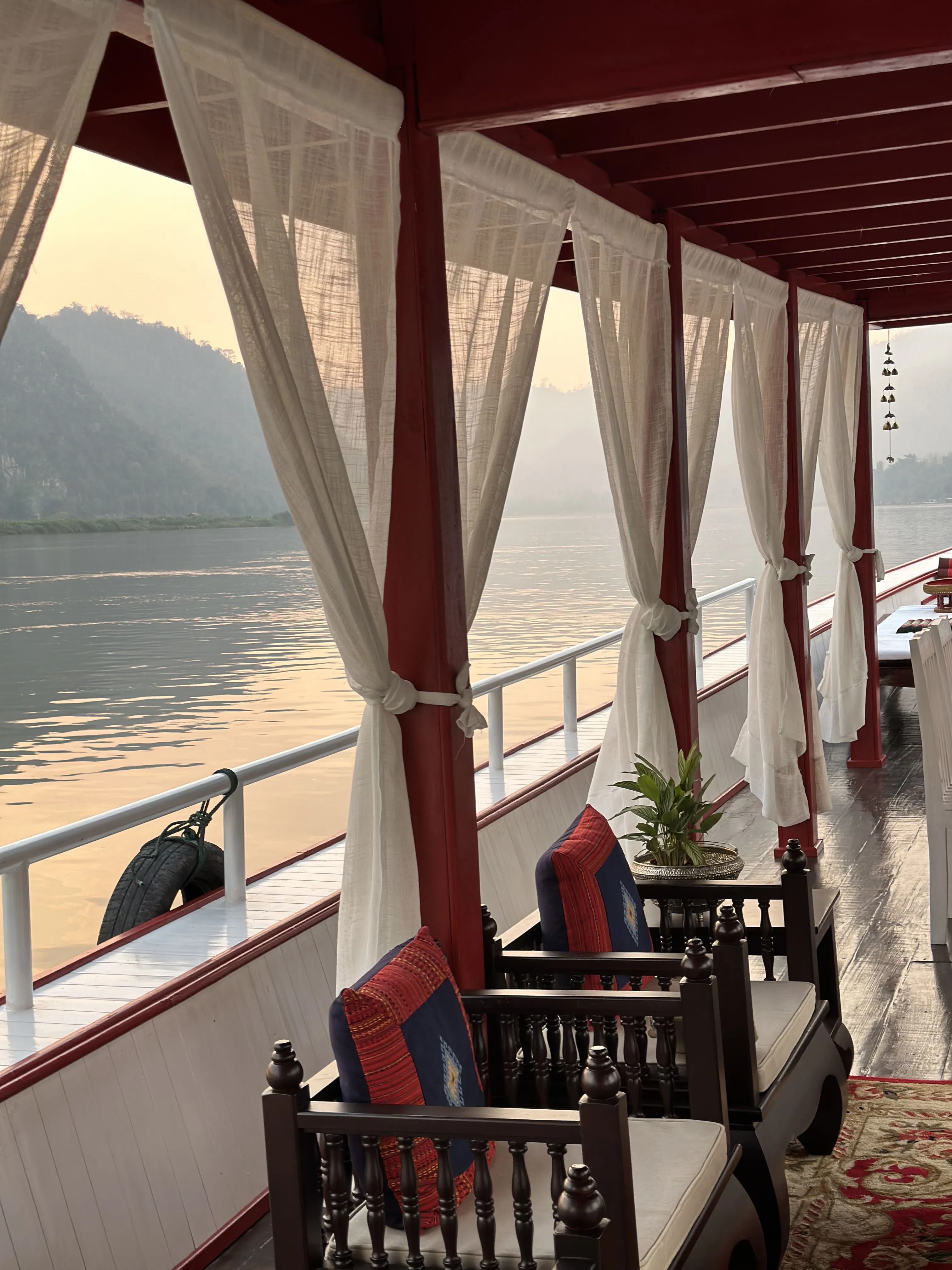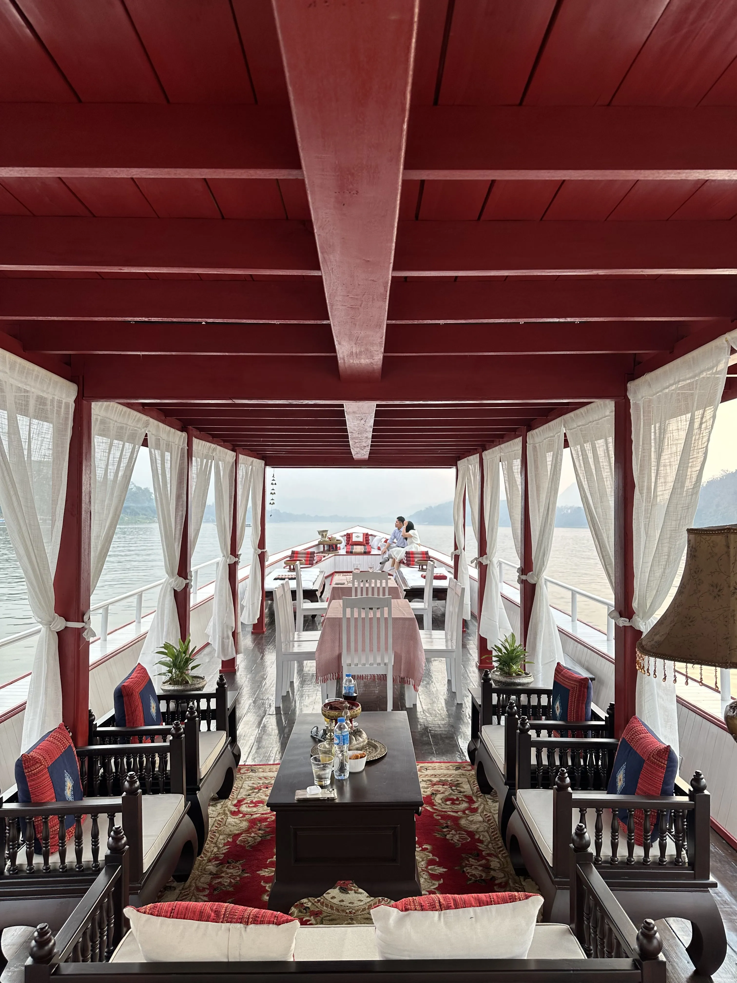 Enjoy a slow boat trip on the private Classic Yacht to visit Pak Ou cave
