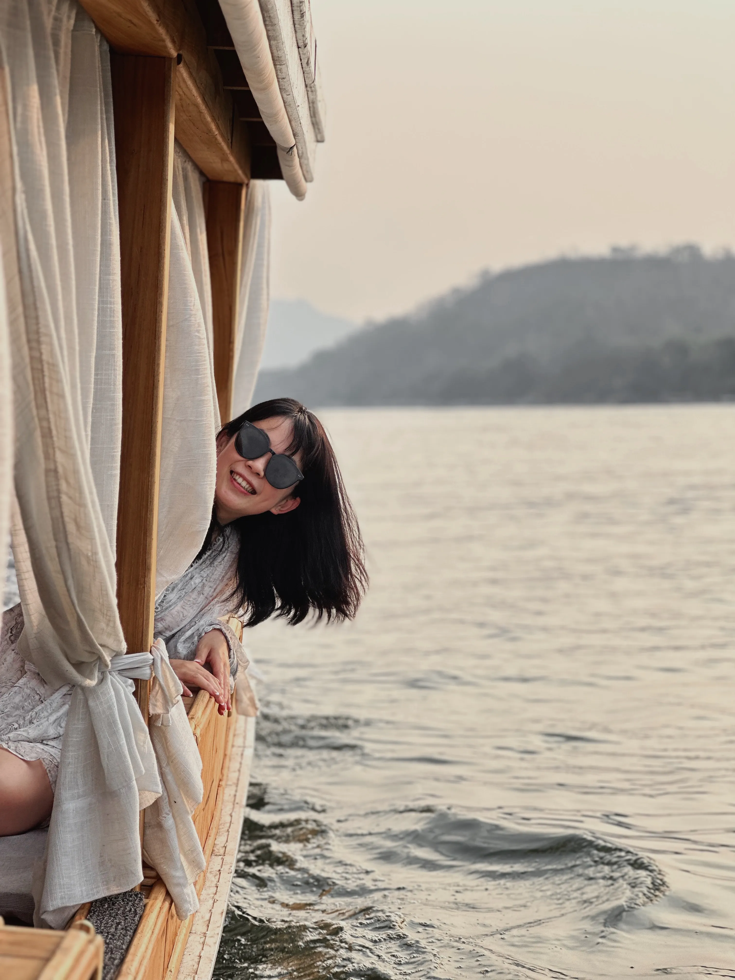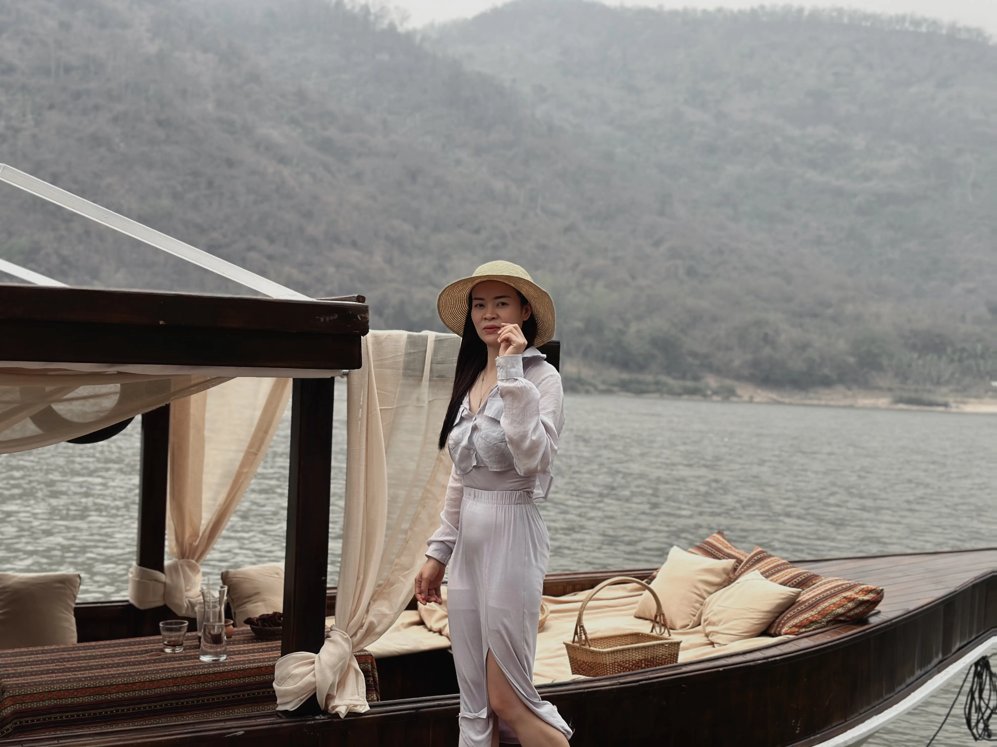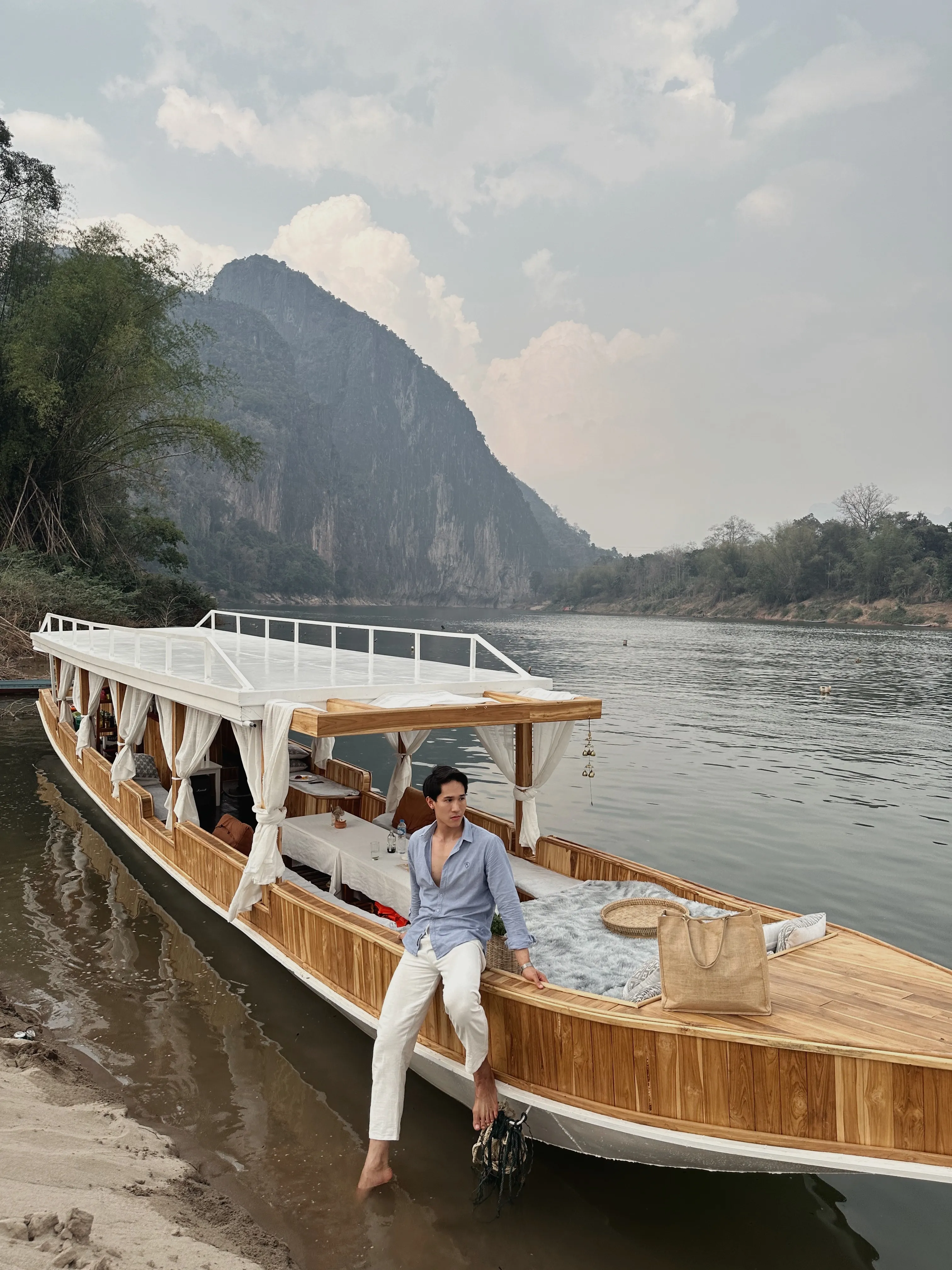 Enjoy a slow boat trip on the private Classic Yacht to visit Pak Ou cave