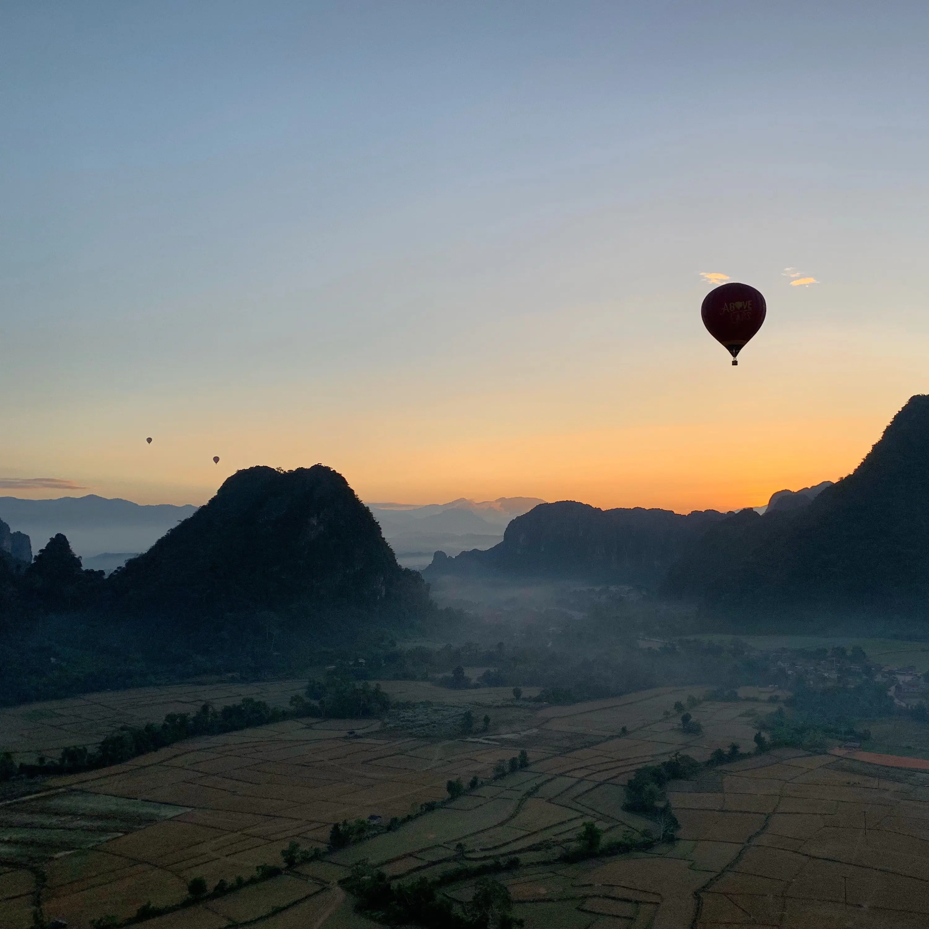 Join us for a complete hot air balloon experience in the beautiful Lao countryside near Vang Vieng. Book your hot air balloon flight here and plan your adventure now